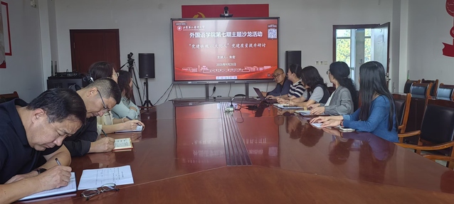 9月26日下午,外国语学院举办第七期主题沙龙活动——“党建铸魂以文化人”党建质量提升研讨会。学院党总支全体成员及各党支部成员参加了活动。