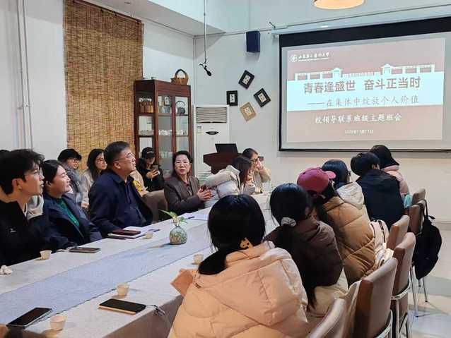 11月11日下午,校党委委员、组织部部长王世群参加联系班级外国语学院英语专业2023级1班主题班会,活动以“青春逢盛世,奋斗正当时——在集体中绽放个人价值”为主题,在书院茶室举办了一场别开生面的茶香润心、学海同行主题班会。
