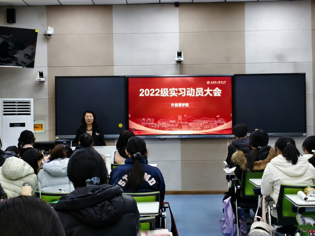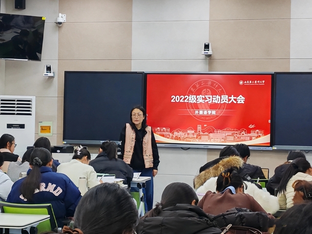 3月10日,外国语学院召开了2022级实习动员大会。学院党总支书记张立、副书记王毅峰、副院长吴迪及2022级全体学生参会。