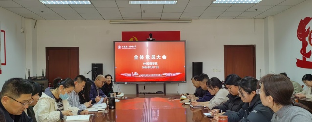 3月12日下午,外国语学院在行政楼362会议室召开全体党员大会,专题启动并部署树立和践行正确政绩观学习教育工作。学院全体党员参加会议。