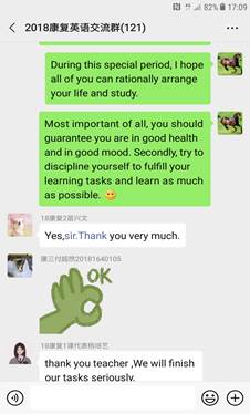 一、建立和完善了师生的沟通渠道。首先建立了任课教师和所授课班级学生的微信群,通过微信群教师可以发出指令并在群中讲解和答疑,师生可以进行沟通。其次,任课教师选用雨课堂、腾讯视频、智慧树等作为教学辅助来布置和检查作业,对学生进行辅导。
