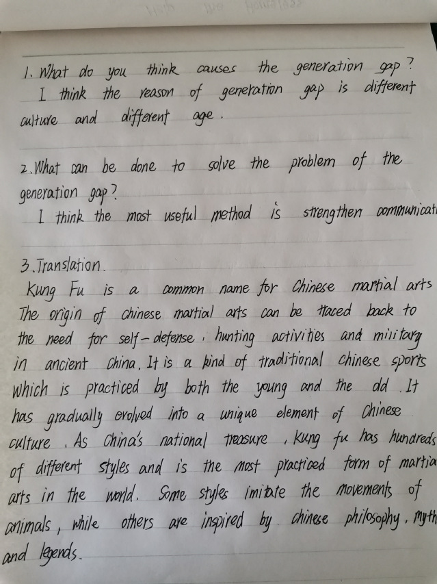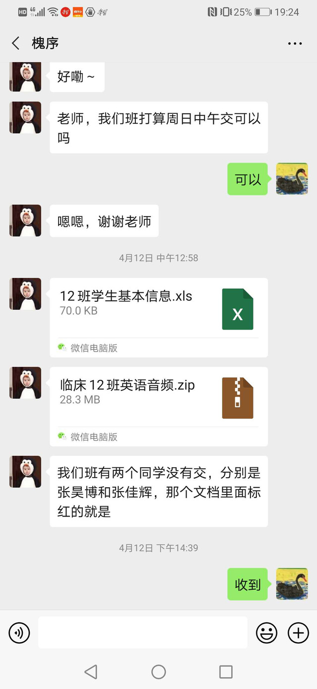课上采用教师讲授+学生参与活动的方式,充分调动学生上课积极性。首先检查上节课的作业情况,作业课前已经以班级为单位收集至教师处,教师选取部分作业进行展示,并对存在问题进行其中讲解和答疑。然后进行讲授环节,期间教师采用学生为主体的教学方式,启发式讲授过程,以学生为中心,引导学生解决课前预习时存在的问题和对重点难点知识的把握。学生活动方式一般采取问答形式,要求学生在规定时间发语音、图片等至班级群,进行交流和反馈。或者以语音连线方式参与学生话题讨论,指导学生学习。通过学生参与课堂讲授环节,充分调动了同学们的上课关注度,让学生真正参与课堂,成为课堂的主人。