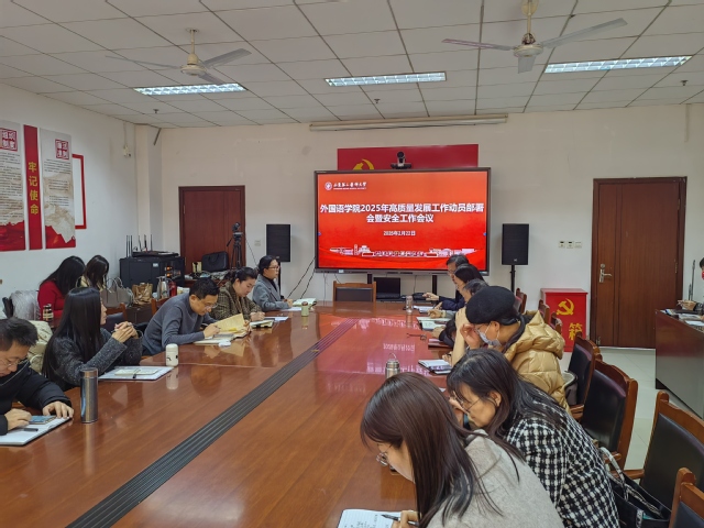 2月22日,外国语学院于办公楼362会议室召开了2025年高质量发展工作动员部署会暨安全工作会议。本次会议旨在锚定新学期航向,学习全国及全省教育会议精神,并部署安全工作。会议由党总支书记张立主持,全体教师参会。