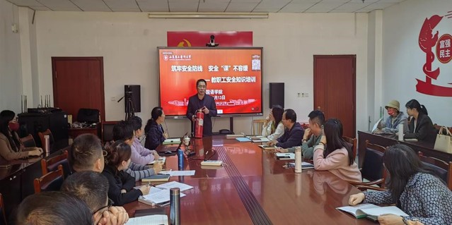 为响应学校“安全文化月”号召,进一步增强教职工消防安全意识,筑牢安全防线,11月13日下午,外国语学院特邀学校保卫处消防工程师刘汉亮老师为学院全体教师进行了一场生动实用的消防安全实操培训。